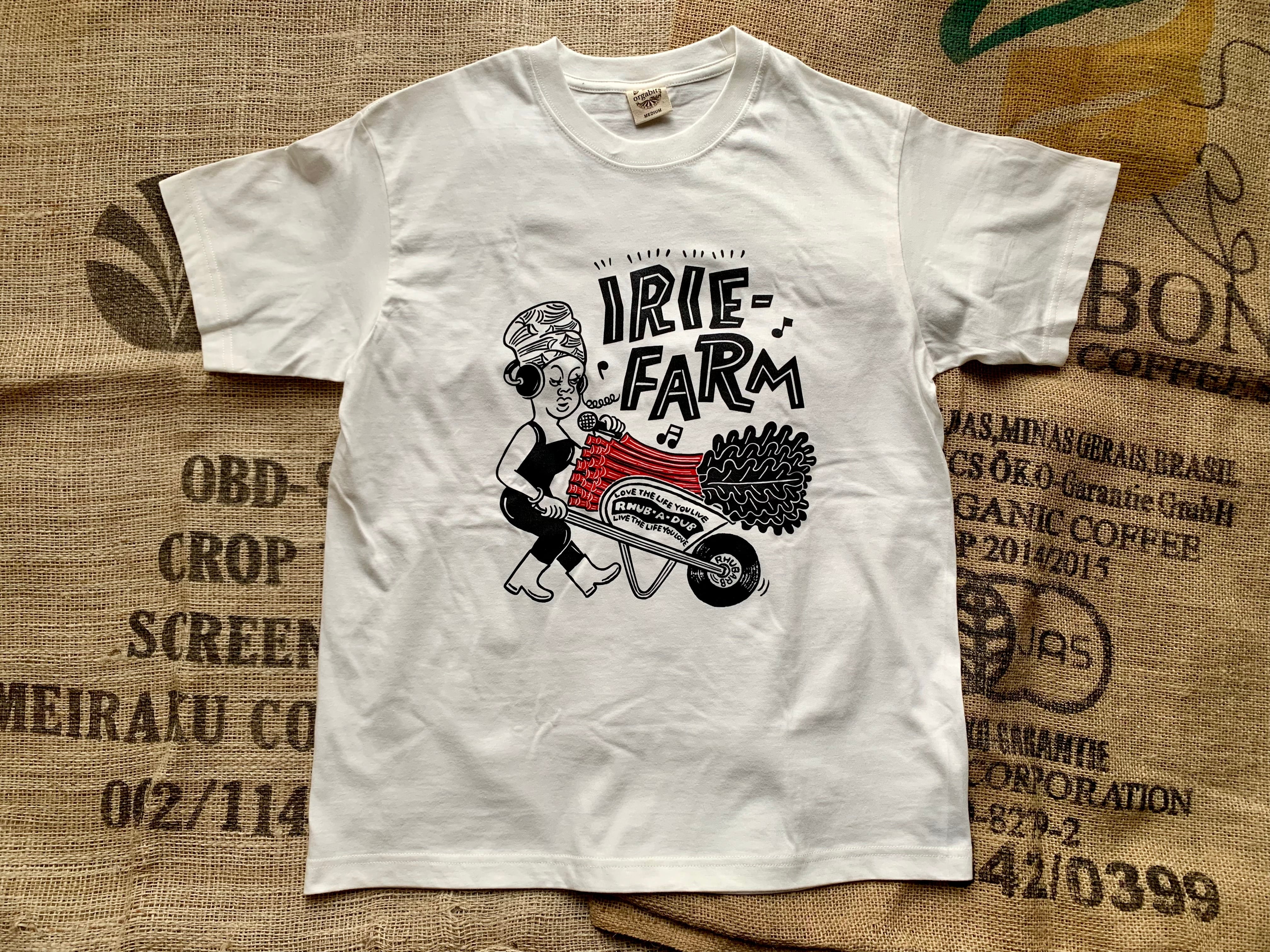 オーガニックコットン100%のTシャツにIRIE-FARMのイラストロゴを落とし込みました!インパクト抜群です。